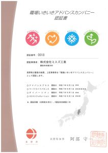 職場いきいきアドバンスカンパニーの認証を受けました。